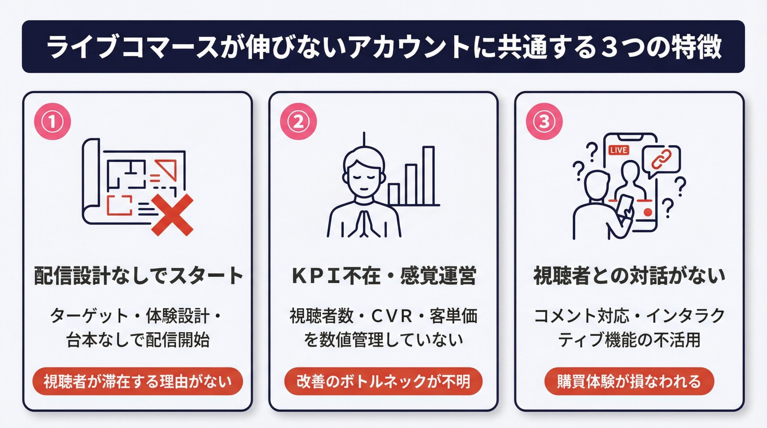 【誰も教えてくれない】ライブコマースが伸びないアカウントに共通する3つの特徴